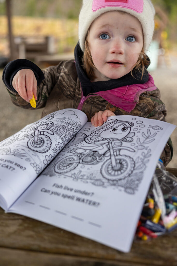 Our Throttle Sisterhood coloring books are designed for kids who love adventure and parents who value creativity, confidence, and connection. Each book is packed with bold illustrations, playful characters. Every page has a chance to practice reading and writing.