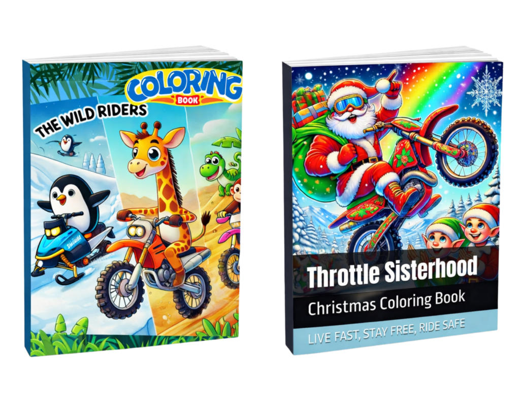 Fuel your child’s imagination with moto-inspired coloring books that celebrate adventure, creativity, and freedom. From wild animal riders to moto Santa, these books are made for kids who dream big on and off the track.